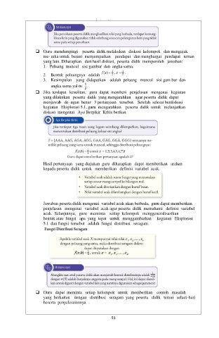 Jawaban peserta didik mengenai variabel acak akan berbeda, guru dapat memberikan