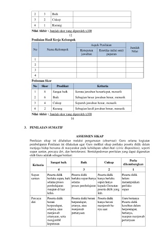 sopan santun, percaya diri, dan bertoleransi. Bentukpedoman penilaian yang dapat digunakan