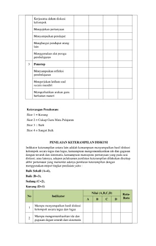 Indikator keterampilan antara lain adalah kemampuan menyampaikan hasil diskusi
