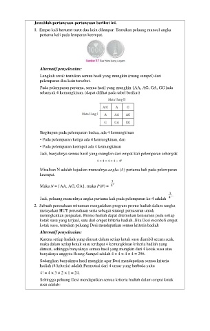 1. Empat kali berturut-turut dua koin dilempar. Tentukan peluang muncul angka