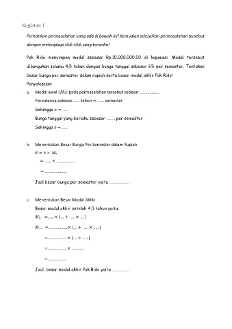 a. Modal awal ( 0) pada permasalahan tersebut sebesar ………………