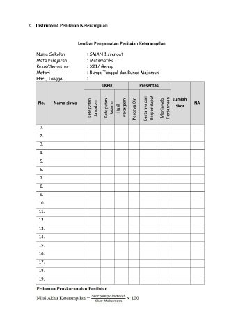 Ketepatan Jawaban Ketepatan Waktu Hasil Pekerjaan Percaya Diri Bertanya dan Berpendapat Menjawab Pertanyaan Skor