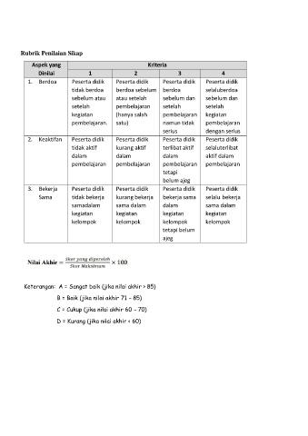 Keterangan: A = Sangat baik (jika nilai akhir > 85)