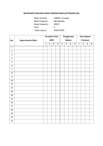 INSTRUMEN PENILAIAN ASPEK PSIKOMOTORIK (KETERAMPILAN)