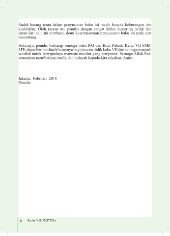 Akhirnya, penulis berharap semoga buku PAI dan Budi Pekerti Kelas VII SMP/