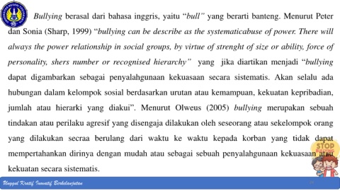 jumlah atau hierarki yang diakui”. Menurut Olweus (2005) bullying merupakan sebuah