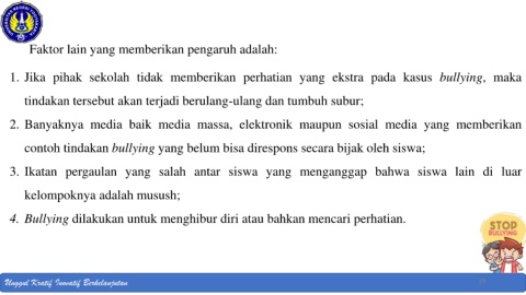 1. Jika pihak sekolah tidak memberikan perhatian yang ekstra pada kasus bullying, maka