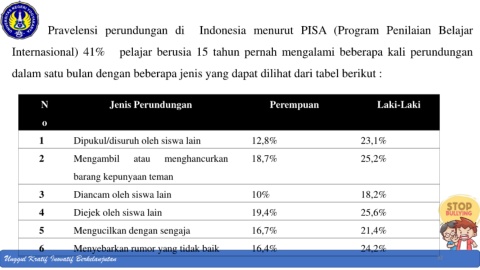 Pravelensi perundungan di Indonesia menurut PISA (Program Penilaian Belajar
