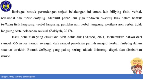 relasional dan cyber bullying. Menurut pakar lain juga tindakan bullying bisa dalam bentuk