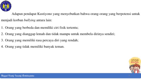 Adapun pendapat Kustiyono yang menyebutkan bahwa orang-orang yang berpotensi untuk