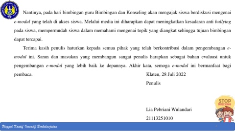 e-modul yang telah di akses siswa. Melalui media ini diharapkan dapat meningkatkan kesadaran anti bullying