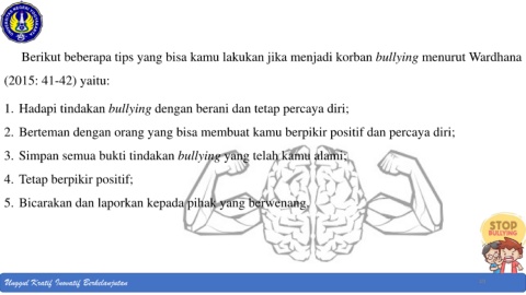 1. Hadapi tindakan bullying dengan berani dan tetap percaya diri;