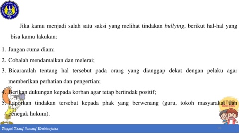 5. Laporkan tindakan tersebut kepada phak yang berwenang (guru, tokoh masyarakat dan