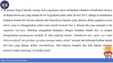 diri lain yang diduga akibat cyberbullying. Ada baiknya berpikir dua kali dahulu sebelum