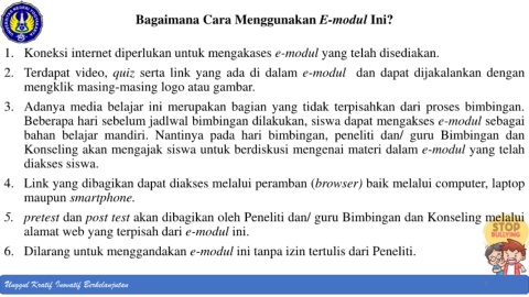 6. Dilarang untuk menggandakan e-modul ini tanpa izin tertulis dari Peneliti.