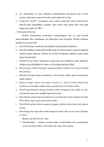 j. Klorofil juga bisa digunakan untuk mengatasi infeksi luka secara alami (Al-Faqir,