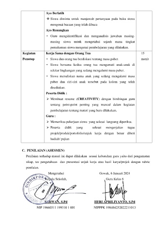 Penutup • Siswa dan orang tua berdiskusi tentang masa puber. menit