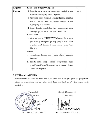Penutup ❖ Siswa bersama orang tua mengamati hak-hak warga menit