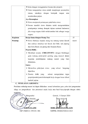 Penutup ❖ Siswa bertanya kepada orang tua tentang tarian daerah menit