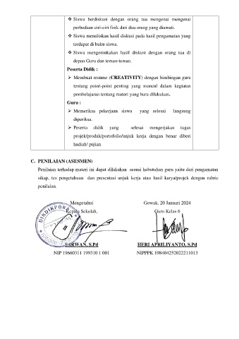 ❖ Siswa menuliskan hasil diskusi pada hasil pengamatan yang