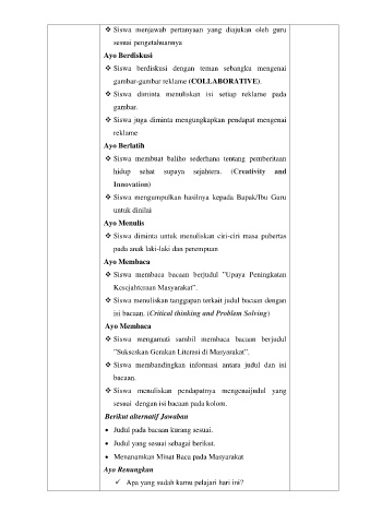 ❖ Siswa diminta menuliskan isi setiap reklame pada