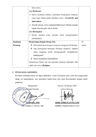 • Setelah selesai, siswa mengumpulkan hasil reklame kepada