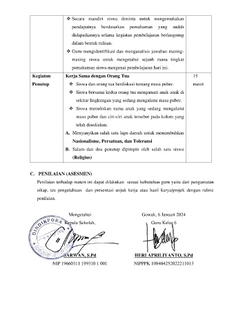 Penutup ❖ Siswa dan orang tua berdiskusi tentang masa puber. menit