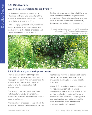 9.9.2 Biodiversity at development scale Sympathetic maintenance enhances