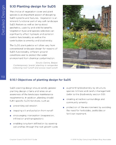 Detailed Design 9.10 Planting design for SuDS 9.10.2 The Principles of SuDS planting selection & design Detailed Design