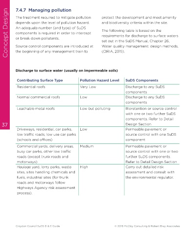 Concept Design 7.4.7 Managing pollution protect the development and meet amenity Additional considerations for infiltrating soils Concept Design