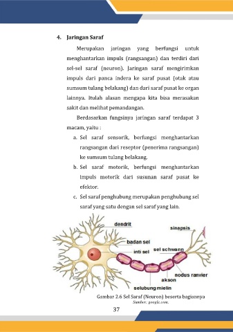 a. Sel saraf sensorik, berfungsi menghantarkan
