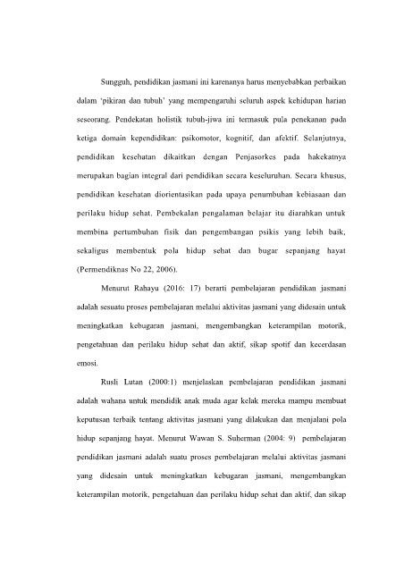 Menurut Rahayu (2016: 17) berarti pembelajaran pendidikan jasmani