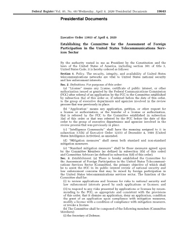 Federal Register / Vol. 85, No. 68 / Wednesday, April 8, 2020 / Presidential Documents 19643