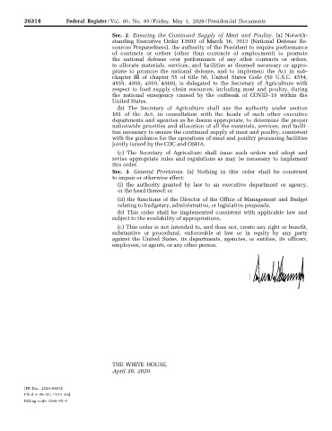 Sec. 2. Ensuring the Continued Supply of Meat and Poultry. (a) Notwith-