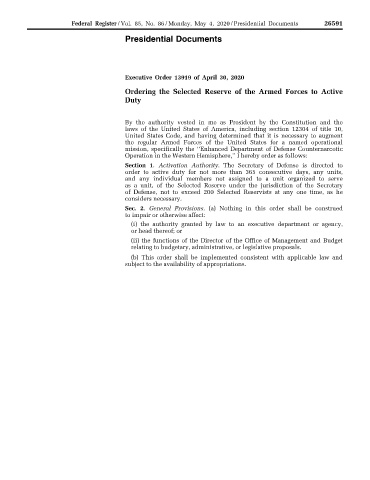 Federal Register / Vol. 85, No. 86 / Monday, May 4, 2020 / Presidential Documents 26591