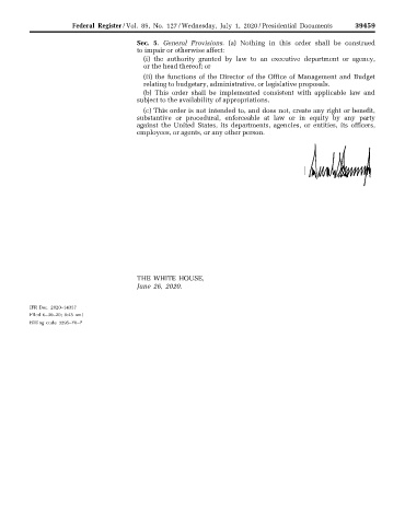 Federal Register / Vol. 85, No. 127 / Wednesday, July 1, 2020 / Presidential Documents 39459