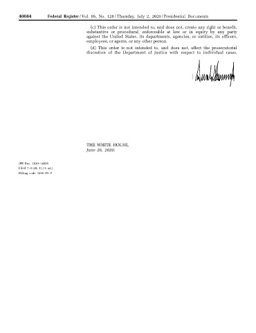 40084 Federal Register / Vol. 85, No. 128 / Thursday, July 2, 2020 / Presidential Documents