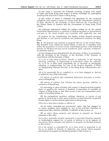 Federal Register / Vol. 85, No. 138 / Friday, July 17, 2020 / Presidential Documents 43415
