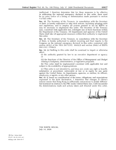 Federal Register / Vol. 85, No. 138 / Friday, July 17, 2020 / Presidential Documents 43417