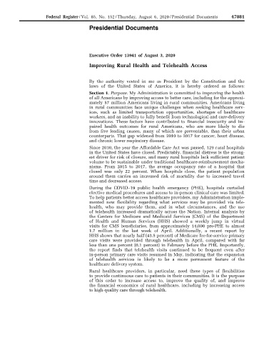 Federal Register / Vol. 85, No. 152 / Thursday, August 6, 2020 / Presidential Documents 47881