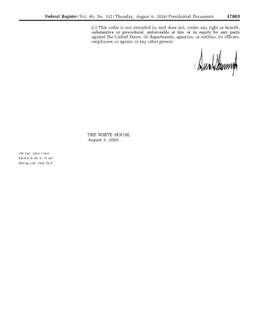 Federal Register / Vol. 85, No. 152 / Thursday, August 6, 2020 / Presidential Documents 47883