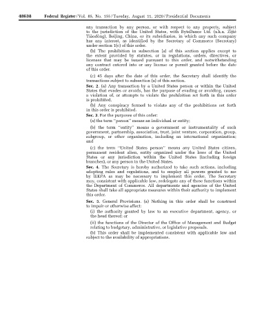 48638 Federal Register / Vol. 85, No. 155 / Tuesday, August 11, 2020 / Presidential Documents