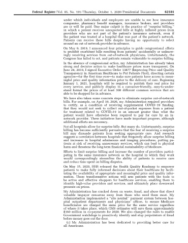 Federal Register / Vol. 85, No. 191 / Thursday, October 1, 2020 / Presidential Documents 62181