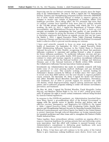 62184 Federal Register / Vol. 85, No. 191 / Thursday, October 1, 2020 / Presidential Documents