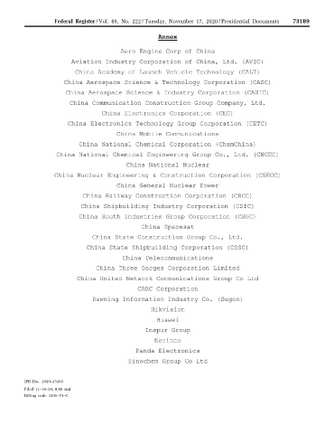 Federal Register / Vol. 85, No. 222 / Tuesday, November 17, 2020 / Presidential Documents 73189