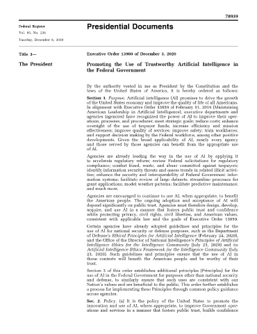 The President Promoting the Use of Trustworthy Artificial Intelligence in