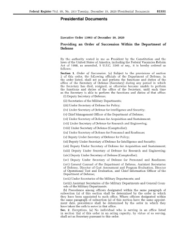 Federal Register / Vol. 85, No. 241 / Tuesday, December 15, 2020 / Presidential Documents 81331