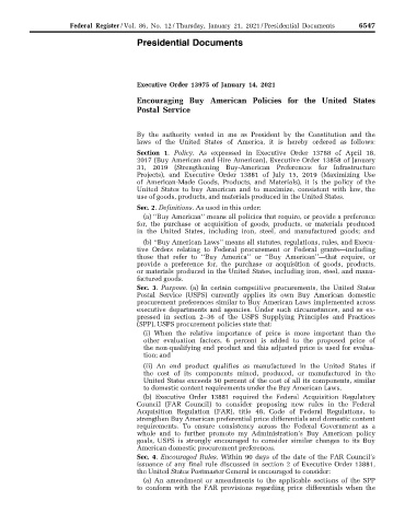 Federal Register / Vol. 86, No. 12 / Thursday, January 21, 2021 / Presidential Documents 6547