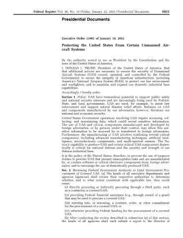 Federal Register / Vol. 86, No. 13 / Friday, January 22, 2021 / Presidential Documents 6821