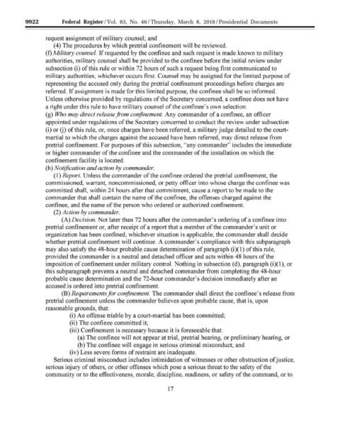 whether pretrial confinement will continue. A commander's compliance with this subparagraph